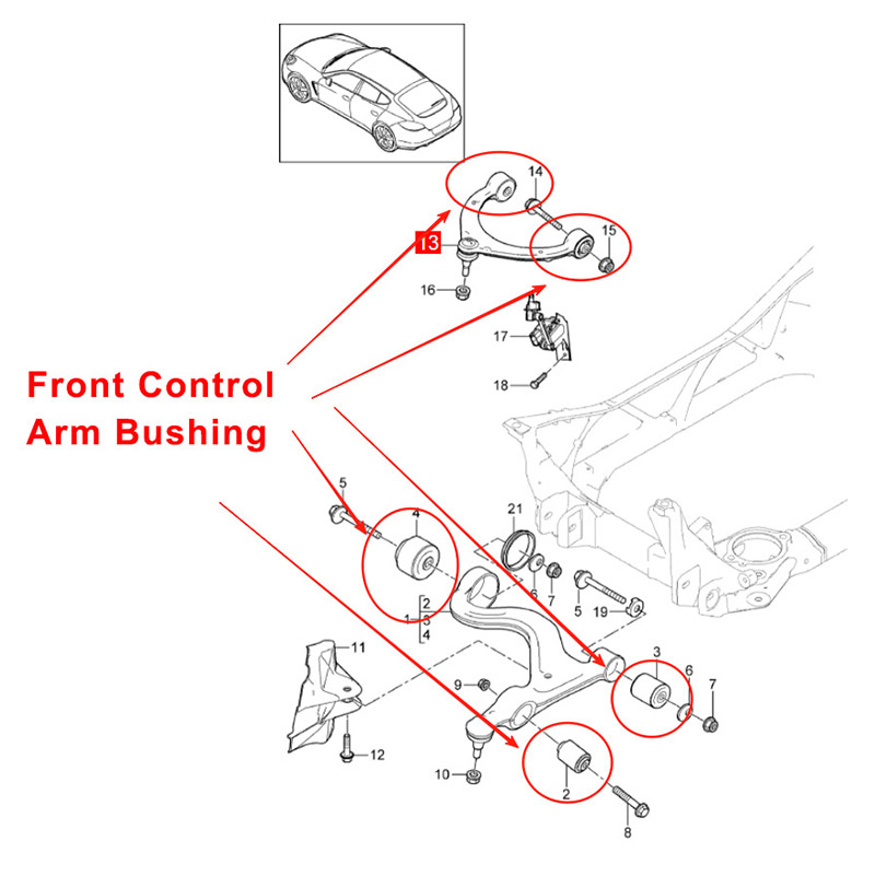 Ако тражите велепродајног добављача Порсцхе Панамера 2014–2016 комплет чаура предње горње и доње командне руке